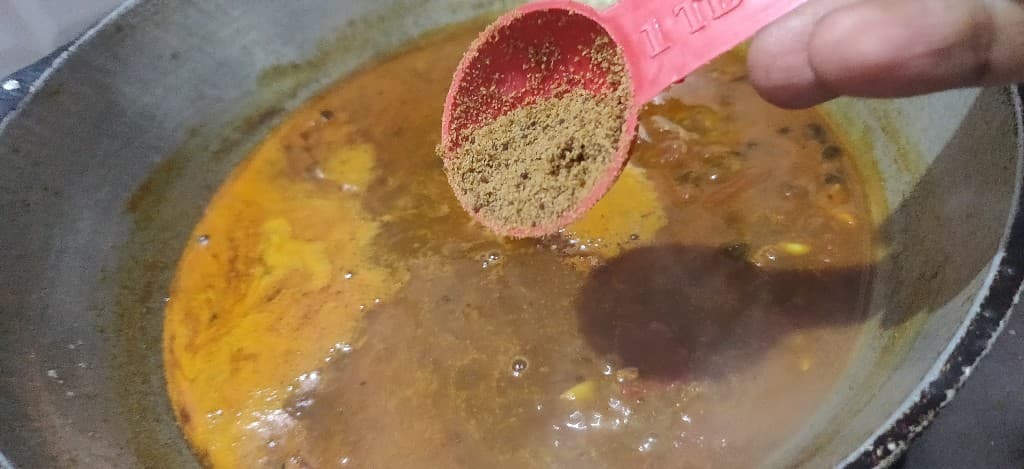 - Then add red chilli powder, coriander powder and turmeric powder.