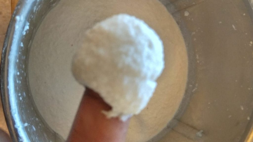 Transfer to bowl and add gram dal flour, salt, butter and asafoetida