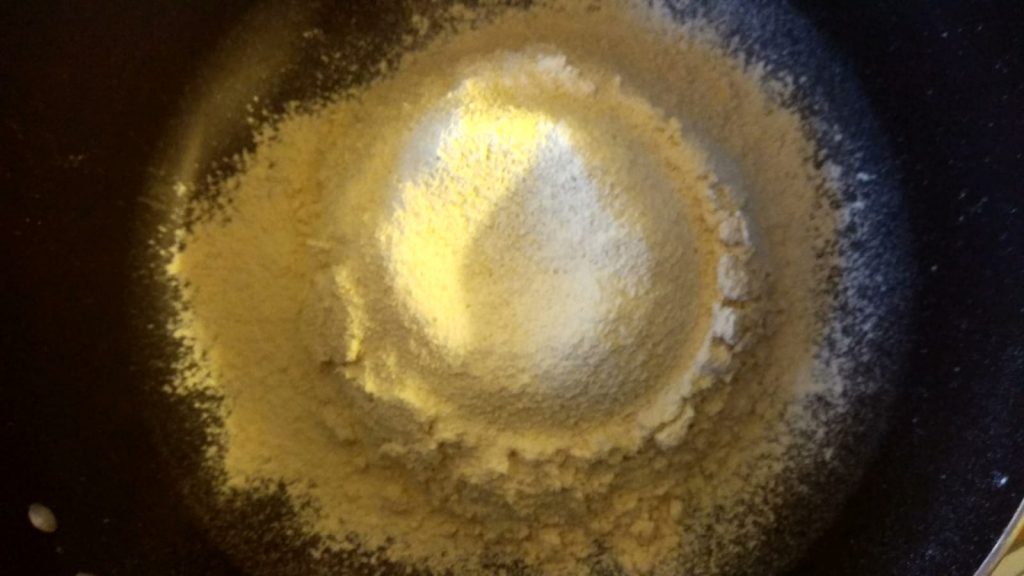 - Heat oil in kadai and start making the dough in meantime.