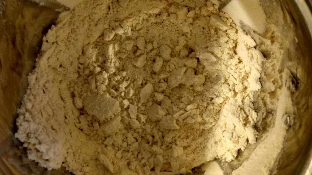 - Transfer to bowl and add gram dal flour, salt, butter and asafoetida